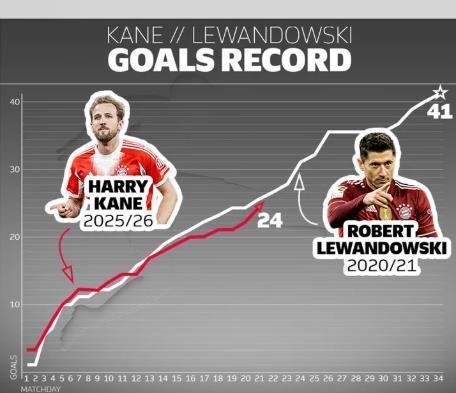 更恐怖的是效率,凱恩僅用405場比賽就達成了301球,場均0.74球。在英超賽場,他320場轟入213球;轉戰德甲后更是如有神助,85場打進88球,效率遠超英格蘭時期。本賽季他在德甲已打入24球(注:根據多個搜索結果更新為26球),領跑射手榜。提到德甲的進球紀錄,就不得不提萊萬多夫斯基在2020/21賽季創下的單賽季41球神跡。在那個令人難忘的賽季,萊萬在第21輪戰罷時打入25球 。對比本賽季的凱恩,22輪過后他已轟入26球,比當年同期的萊萬多1球。更重要的是,凱恩本賽季的進球轉化率高達30.6%,射正率78.1%,這兩項數據都超過了萊萬紀錄賽季的29.9%和58.6%。